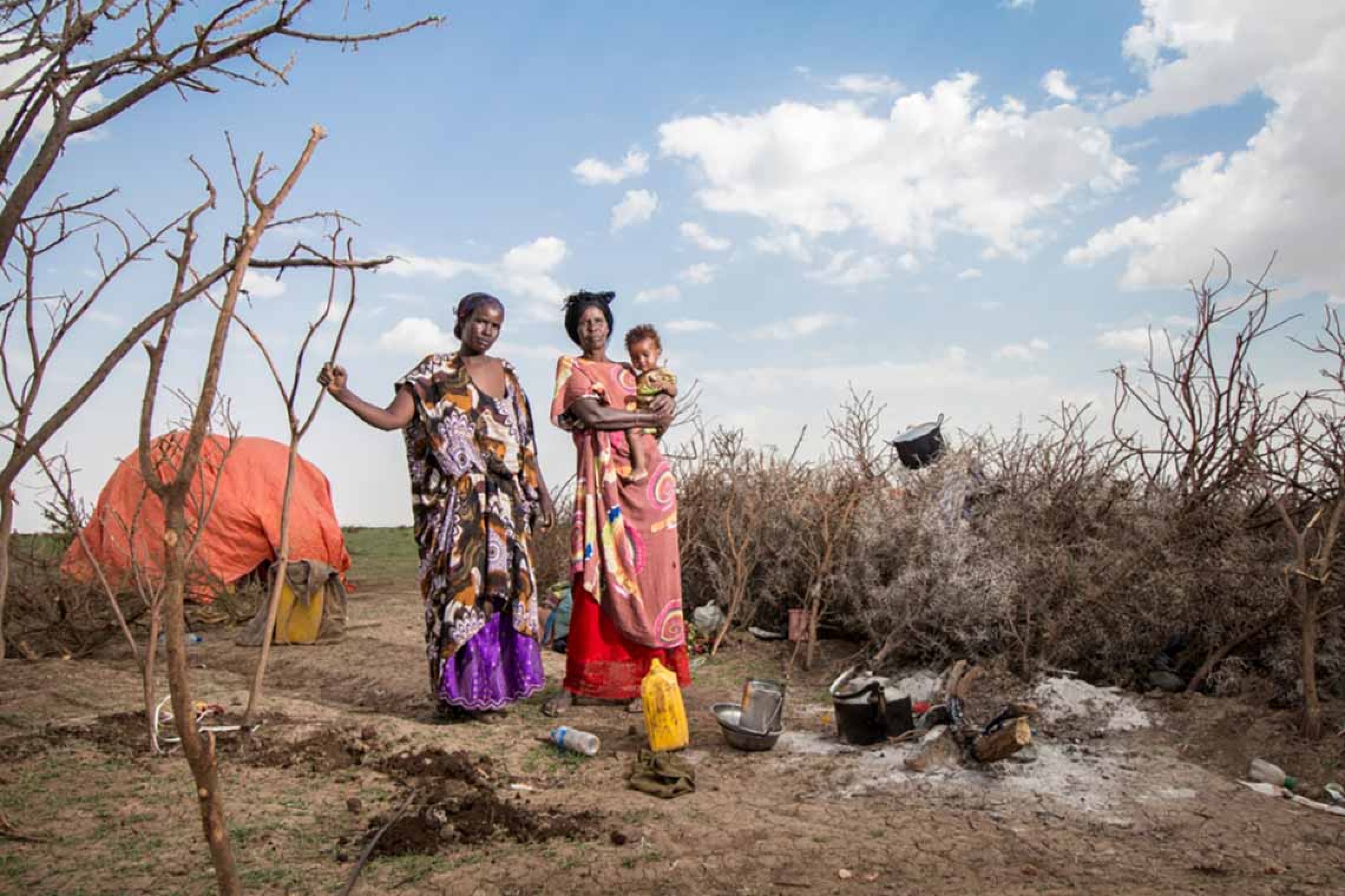 Människor som redan är på flykt på grund av konflikter och våld påverkas också av torkan, i tider av redan svår nöd.